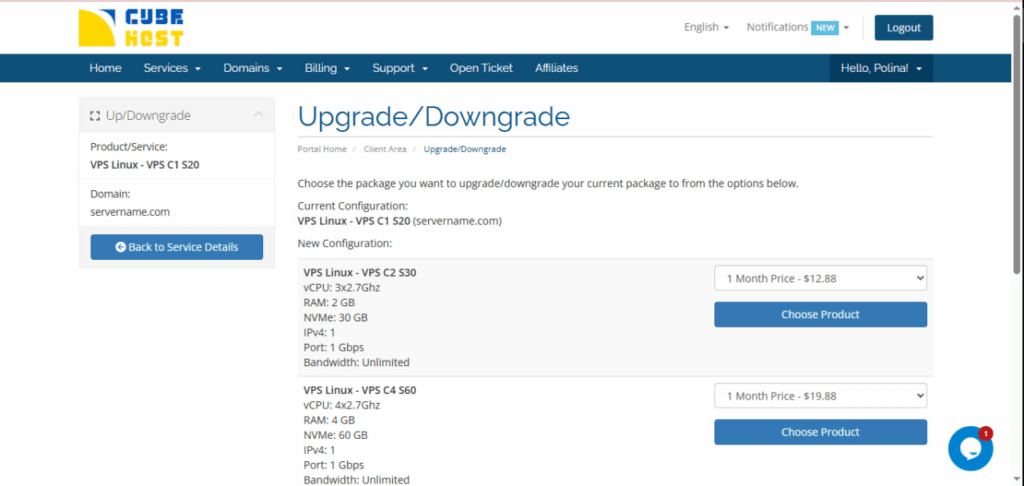 - При переходе на тарифный план с более высоким уровнем обслуживания ресурсы вашего сервера будут расширены.
