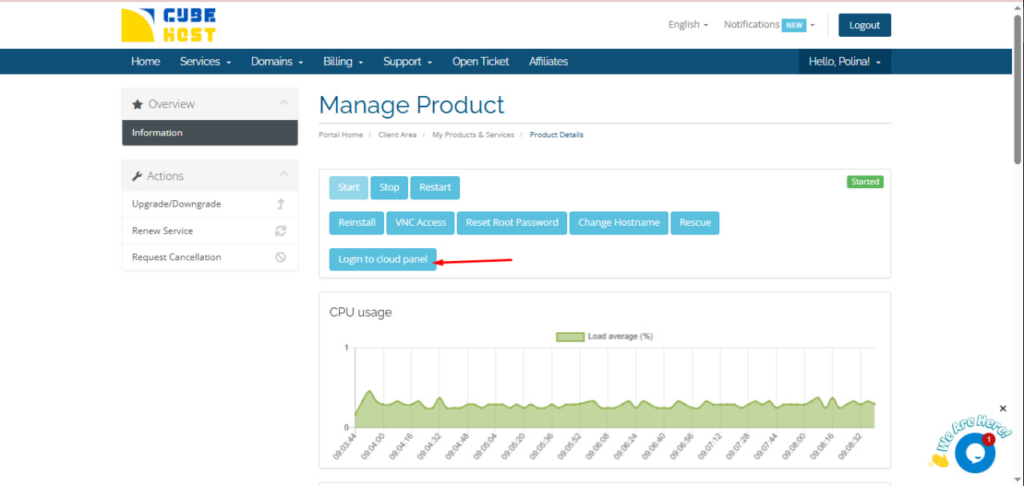 В разделе «Ваши активные продукты/услуги» нажмите «Просмотреть детали» напротив вашего VPS.