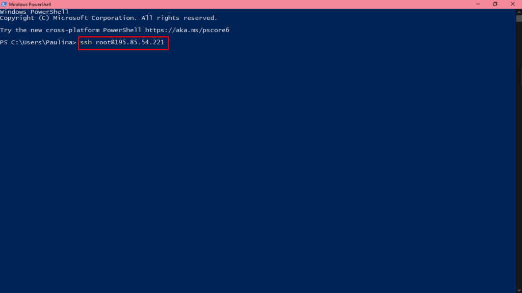 В PowerShell выполните команду: ssh root@IP_ADDRESS