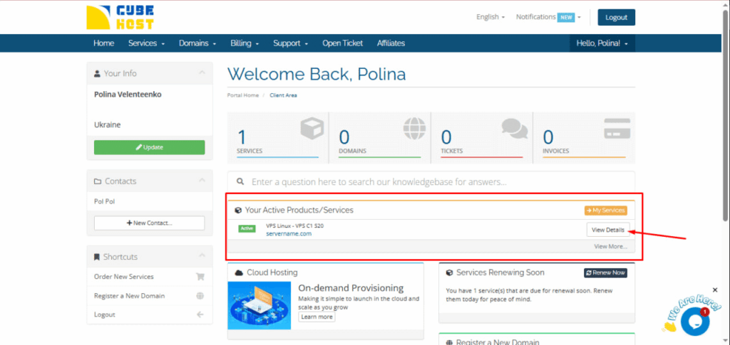 3. Нажмите кнопку «Просмотреть детали» рядом с вашим VPS.