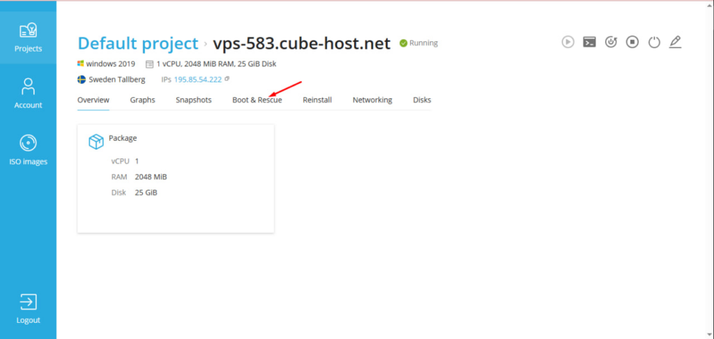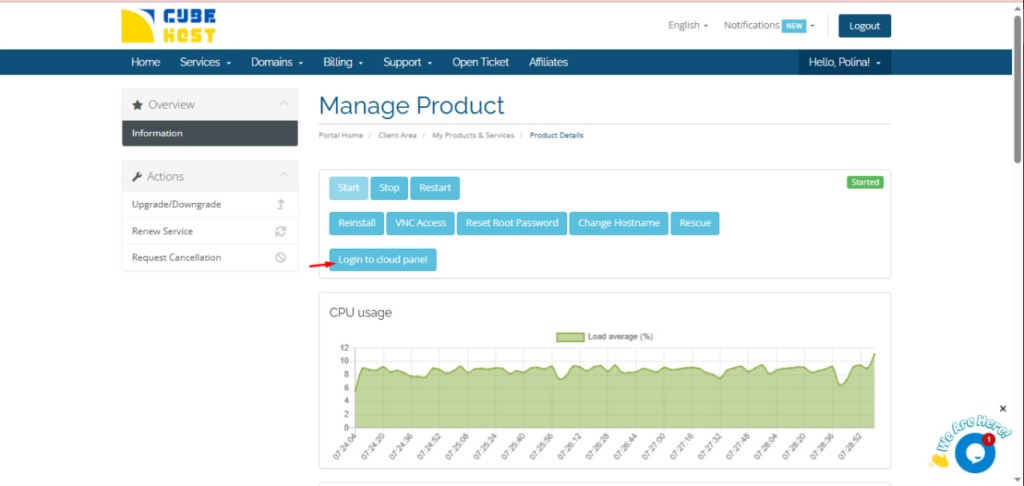 Войдите в личный кабинет Cube-Host и в разделе «Ваши активные продукты/услуги» нажмите «Просмотреть детали» рядом с вашим Windows VPS.