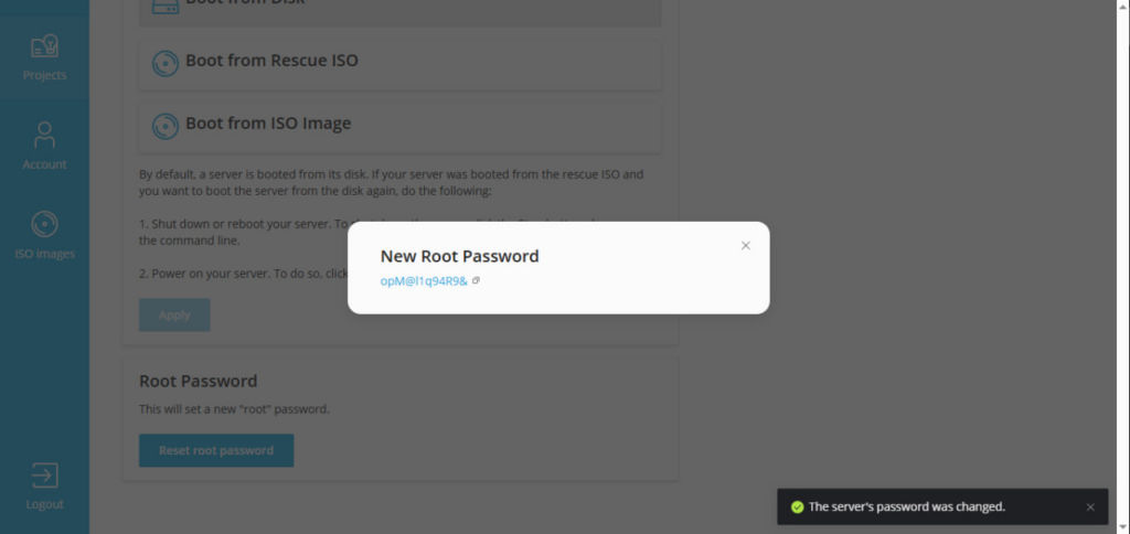 ⚠️ Внимание: во время сброса пароля сервер будет автоматически перезапущен.